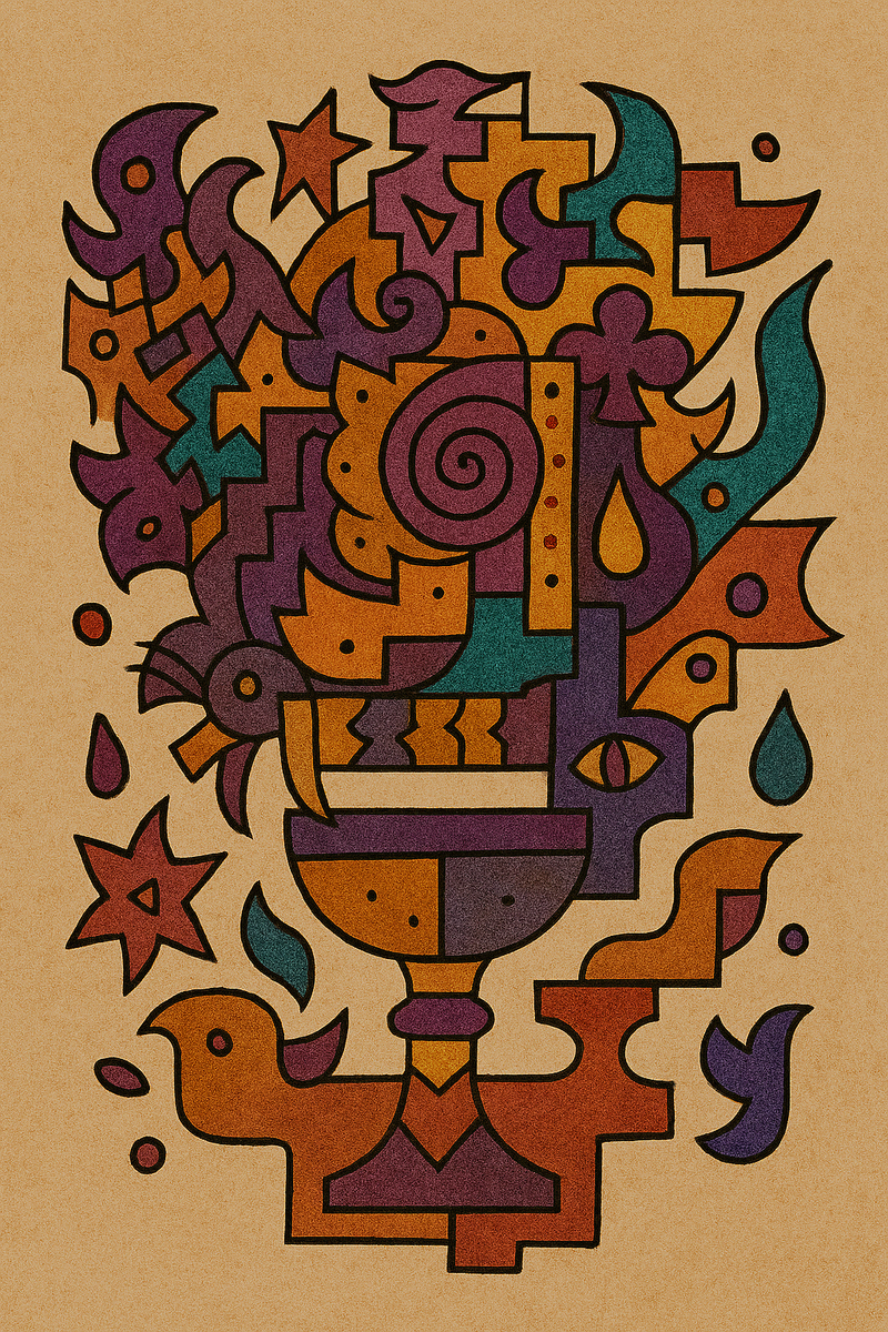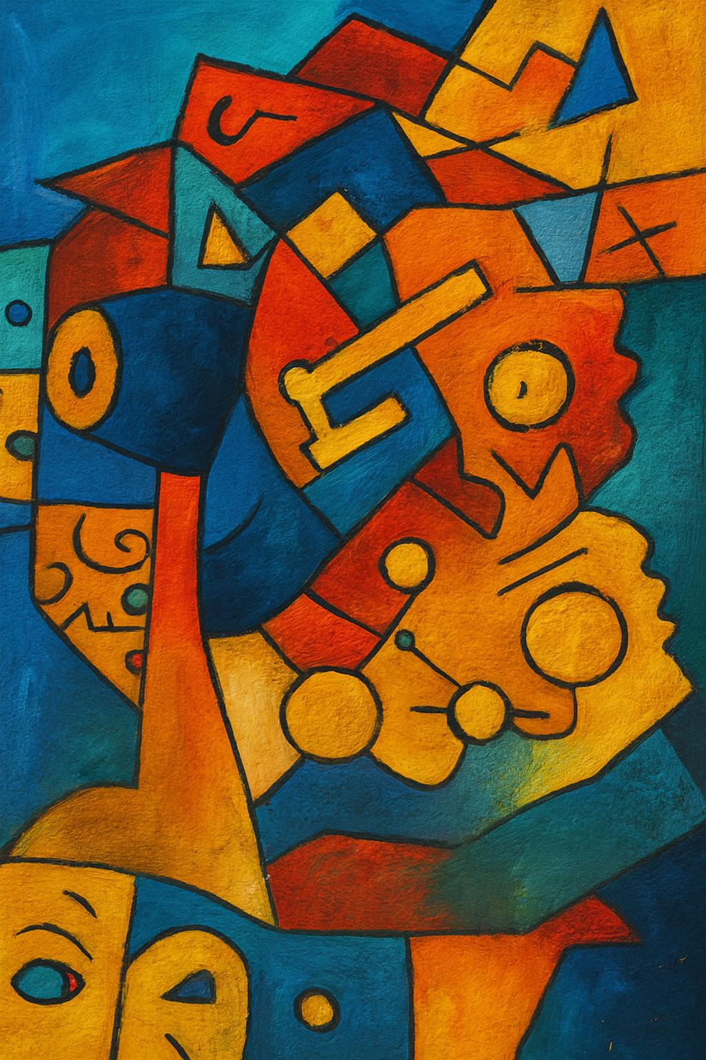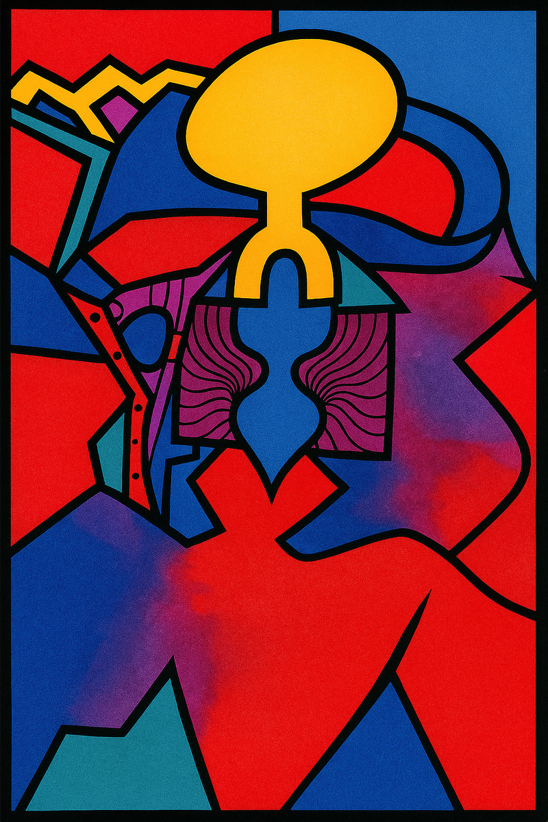 "Cubist Chorus" signifies the harmonious blending of many parts into one rhythmic whole. It uses "expressive geometry" to show that even when identity feels fragmented or "overlapping," it still creates a beautiful, pulsing "symphony."